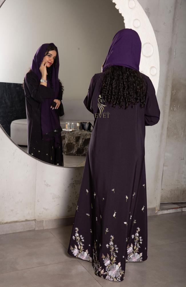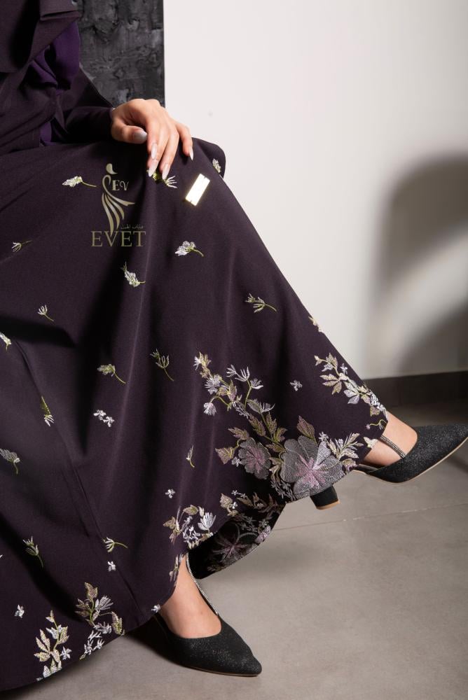 • تصميم العباية: جاء التطريز مميز في هذه العباية فهي عبارة عن تطريز أسفل العباية