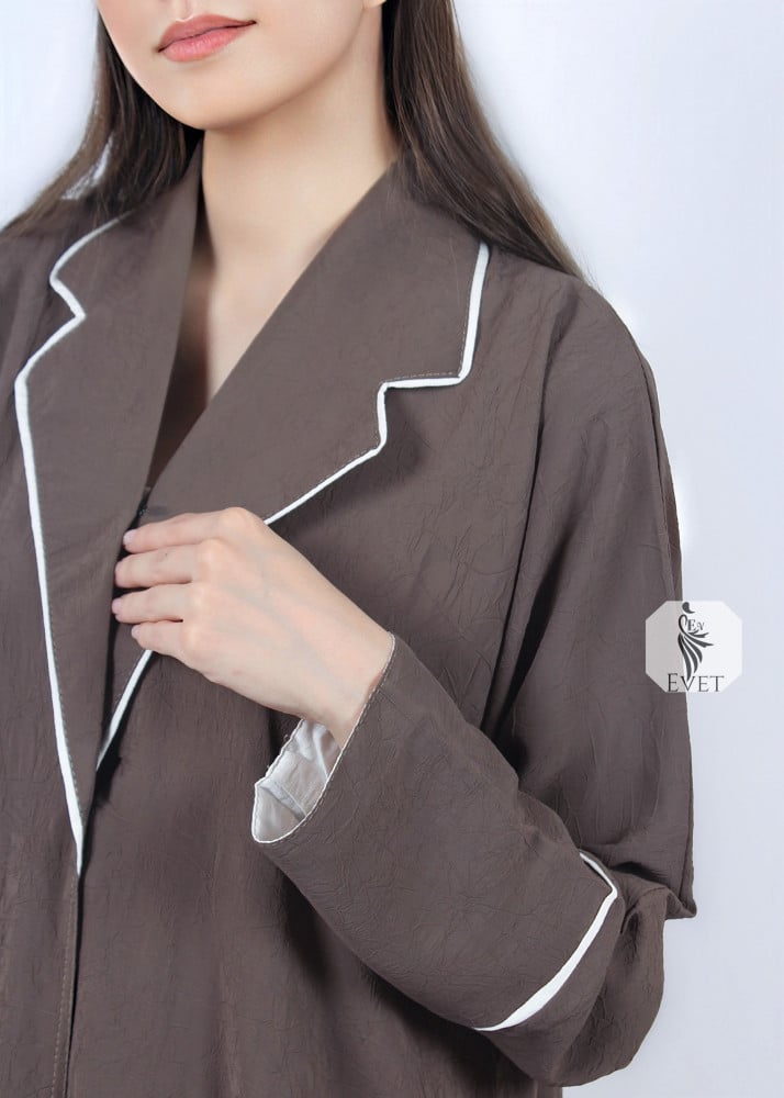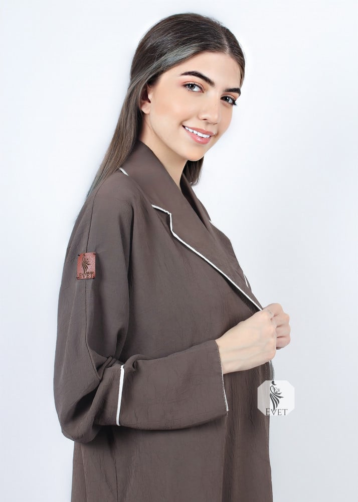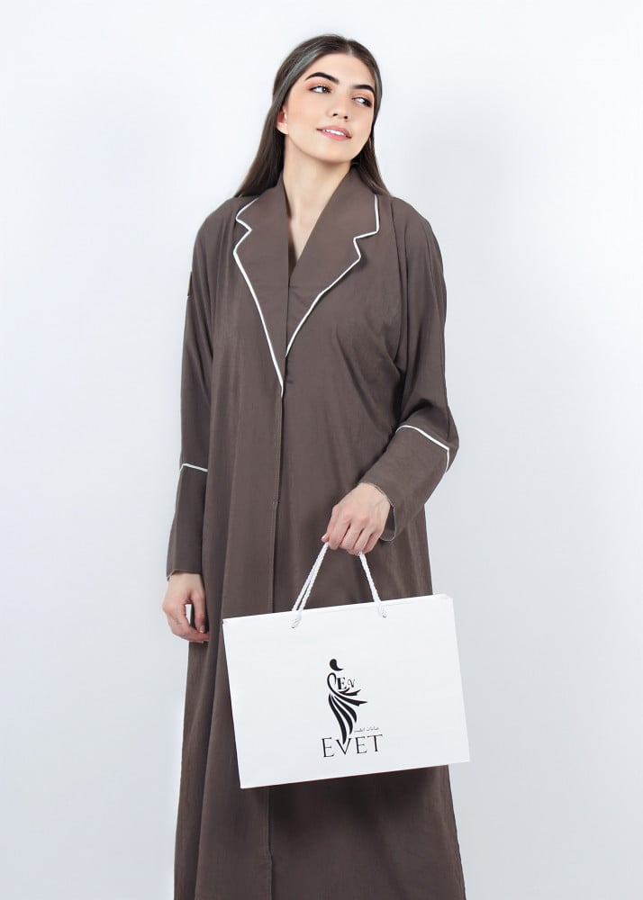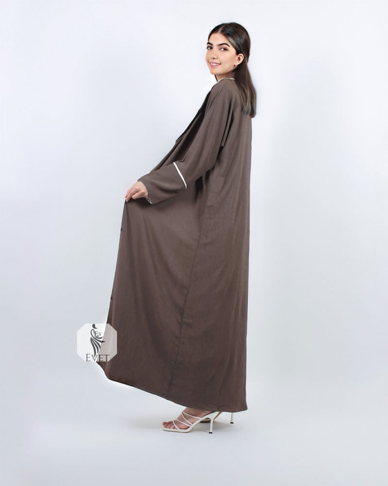 - تمنحكِ الأزرار الأمامية حرية ارتداء عباية بنى مغلقة أو مفتوحة حسب الإطلالة التي ترغبين بها.