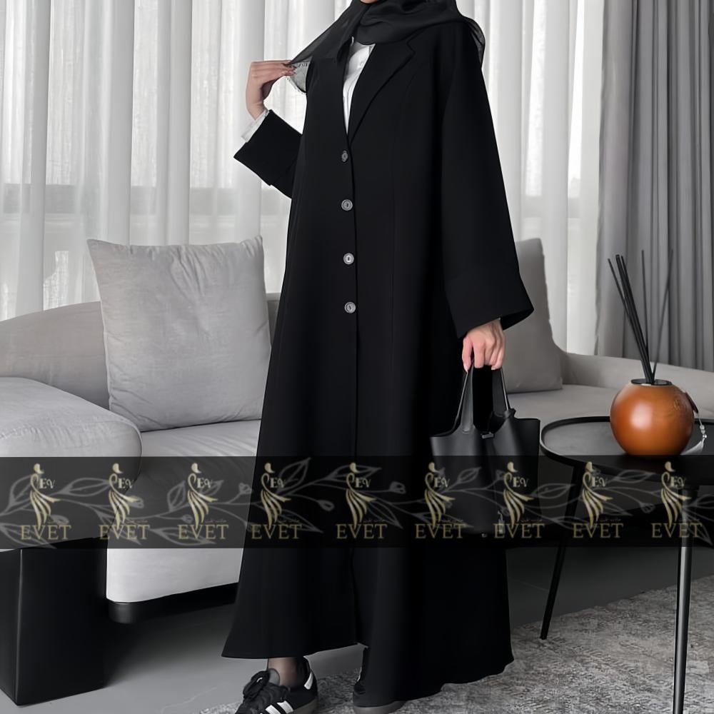 عباية رفعة أزرار كتف، بتصميم أنيق يجمع بين البساطة والتفاصيل الراقية لإطلالة جذابة ومتوازنة.
