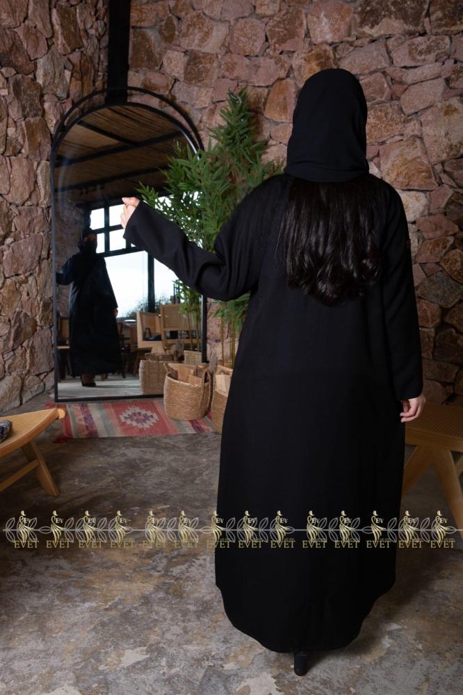 - يتميز القماش بقدرته على توفير الراحة والخفة، مع لمسة مميزة تضفي على العباية طابعًا عمليًا وفاخرًا.